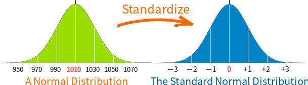 이렇게 만든 데이터는 평균이 0이고, 표준편차(1-sigma)가 1로 mapping되며, X축을 z-score 또는 standardized score라고 부른다.