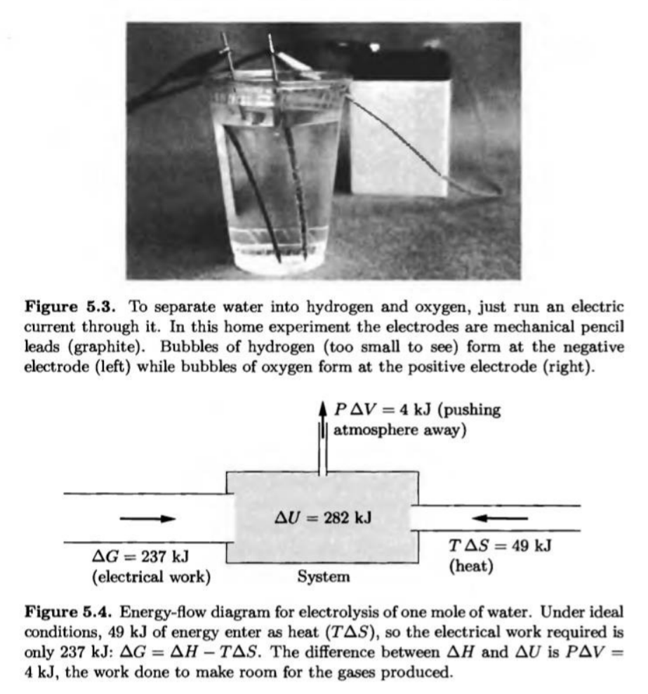 => ∆G (237 kJ) = ∆U (282 kJ) + P∆V (4kJ) - T∆S (49 kJ)