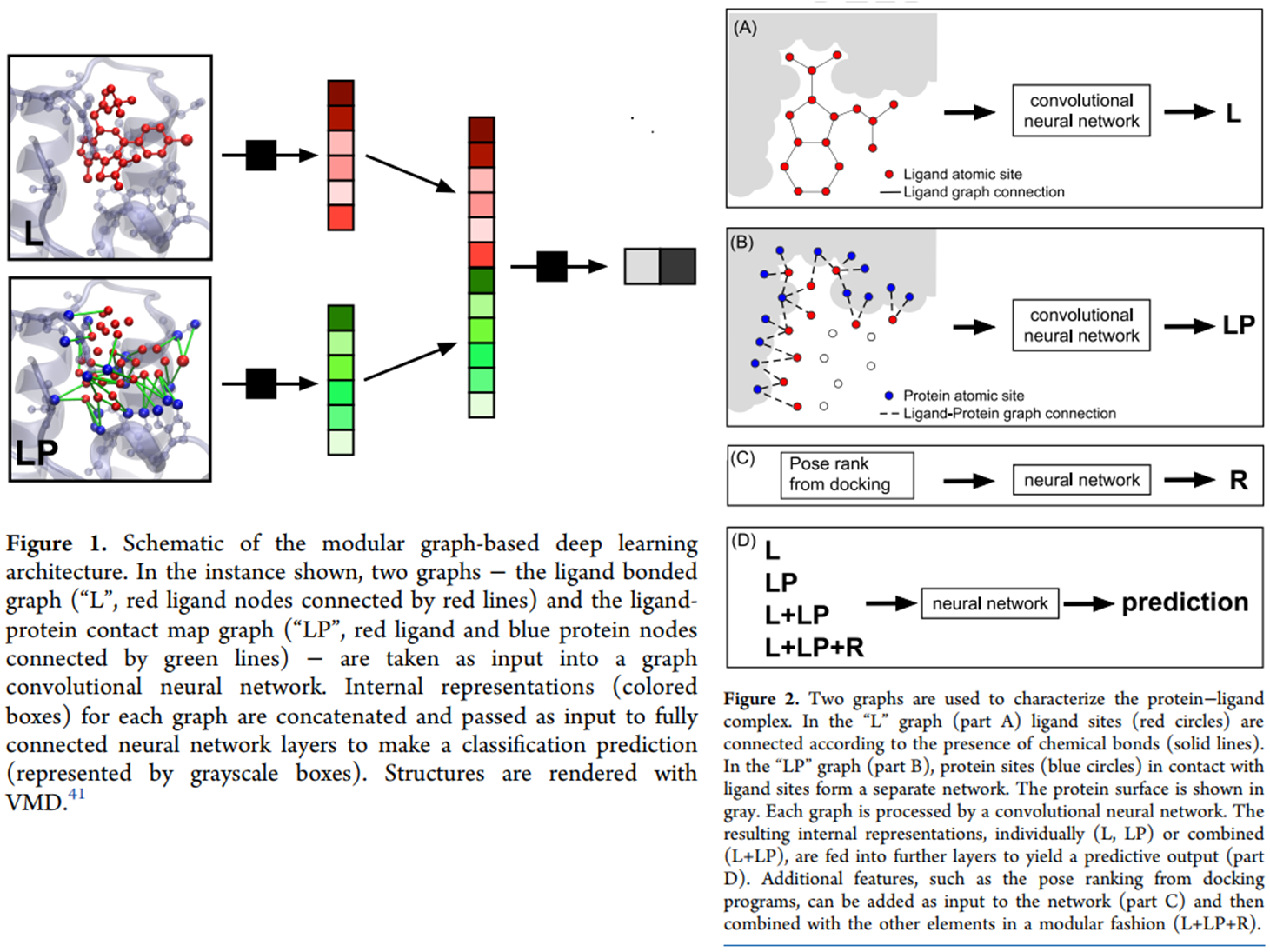 - Combining Docking Pose Rank and Structure with Deep Learning Improves Protein–Ligand Binding Mode Prediction over a Baseline Docking Approach, https://doi.org/10.1021/acs.jcim.9b00927