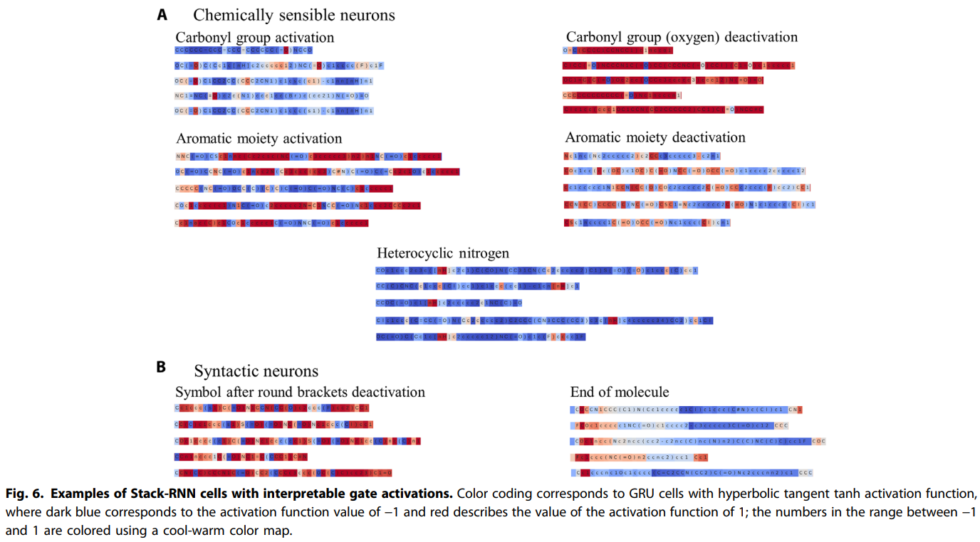 > Tanh activation 값을 통해서 해석 가능성을 보여줌. (chemically sensible groups, syntactic groups)