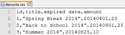 LOAD DATA INFILE 'discounts.csv'