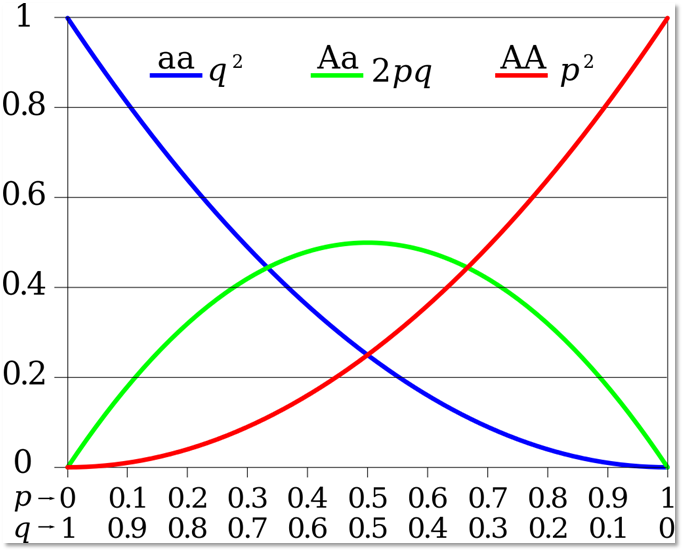 - 다음 세대의 alleles는 현재 세대의 alleles가 random하게 선택되어 나타난다. (random mating, no selection)