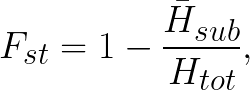 Fst=1-(Average expected Heterozygosity within subpopulation/Expected Heterozygosity of the total population),