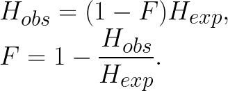 이고, 정리하면 위쪽 식과 같은 식을 얻을 수 있다. 이를 F_is (individual structure) 라고 쓰며, local subpopulation에 대한 개개인의 inbreeding coefficient 이다.