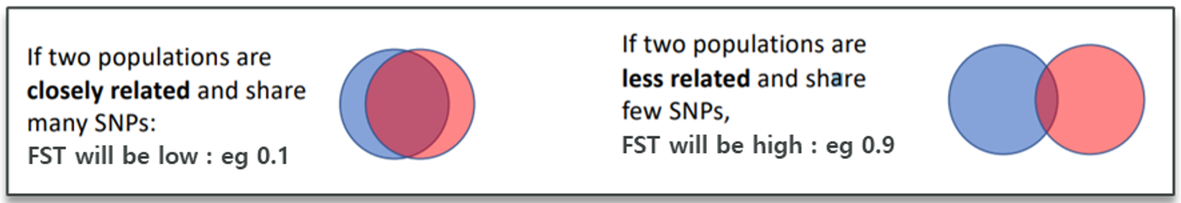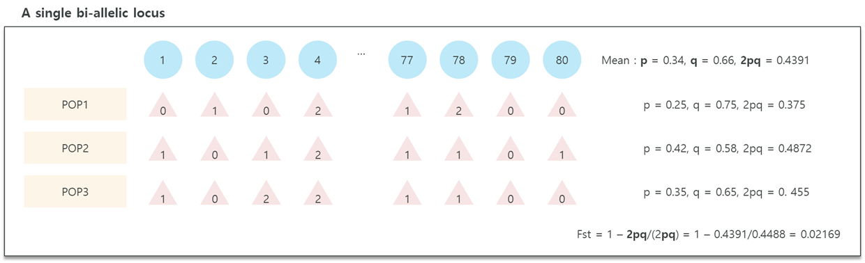 즉, 집단유전학에서 Fst는 heterozygosity의 비율을 이야기한다. 그리고 subpopulation이 얼마나 다른지를 나타내는 measure로 쓰인다.