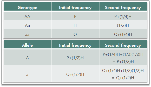예를 들어 자화수정(self fertilization)을 한다고 하자. 이것은 non-random mating이고, 수정이 끝난 이후에도 allele frequecy는 같은 값을 가지게 된다. 그리고 시간이 지날수록 heterozygosity는 줄어들게 된다.